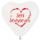 ÇİFT TARAF KIRMIZI SENİ SEVİYORUM BASKILI KALP 12'' BEYAZ BALON. PAKET İÇİ: 100 ADET