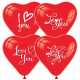 ÇİFT TARAF TEK RENK I LOVE YOU BASKILI KALP 12'' KIRMIZI BALON. PAKET İÇİ: 100 ADET