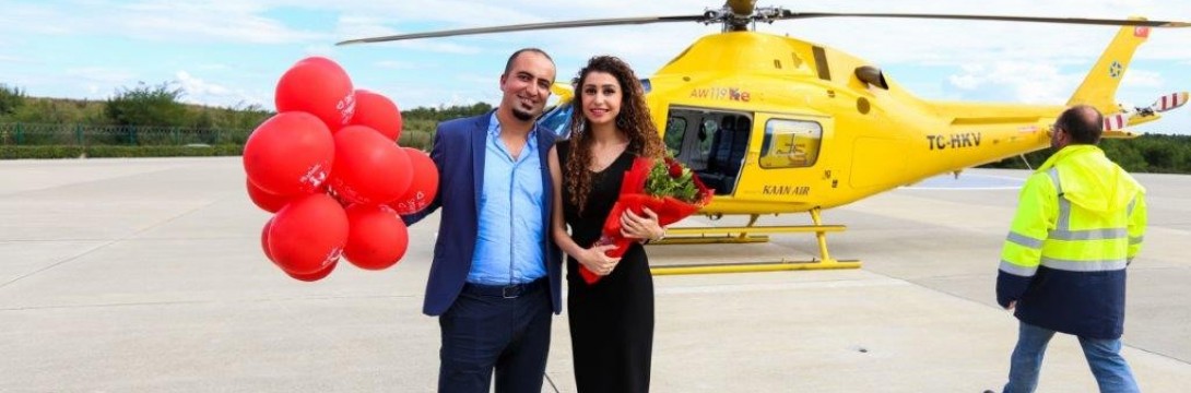 Package Description: İstanbul is under your feet, a 20-minute helicopter tour where you will discover all the beauties of the Bosphorus and a surprise marriage proposal afterwards, again, this is a package that we can book only for Sundays...