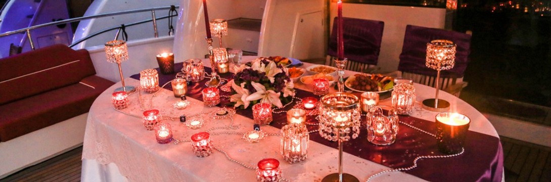 - Yatın organze tüller, mumlar ve fenerlerle süslenmesi