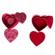 Her türlü sürprizinizde kullanabileceğiniz 3 lü kalpli kutularımız hizmetinizdedir. İç içe geçmiş 3 adet kalp kutudan oluşmaktadir.Sade kırmızı ve desenli kırmızı olarak şimdilik 2 çeşit olarak satışa sunulmuştur. Piyasadakilerden farklı olarak daha büyüktür. En büyük kalpli kutunun kapağı 26x29 cm ölçüsündedir.