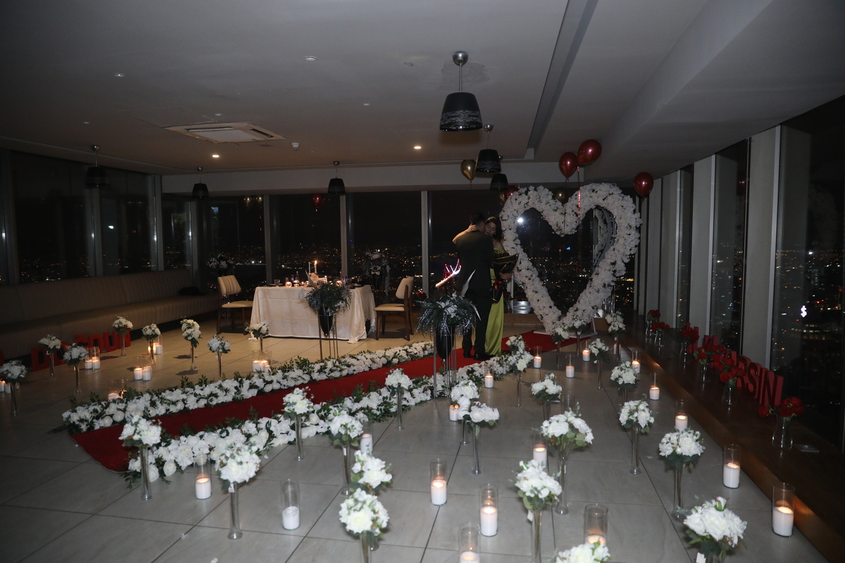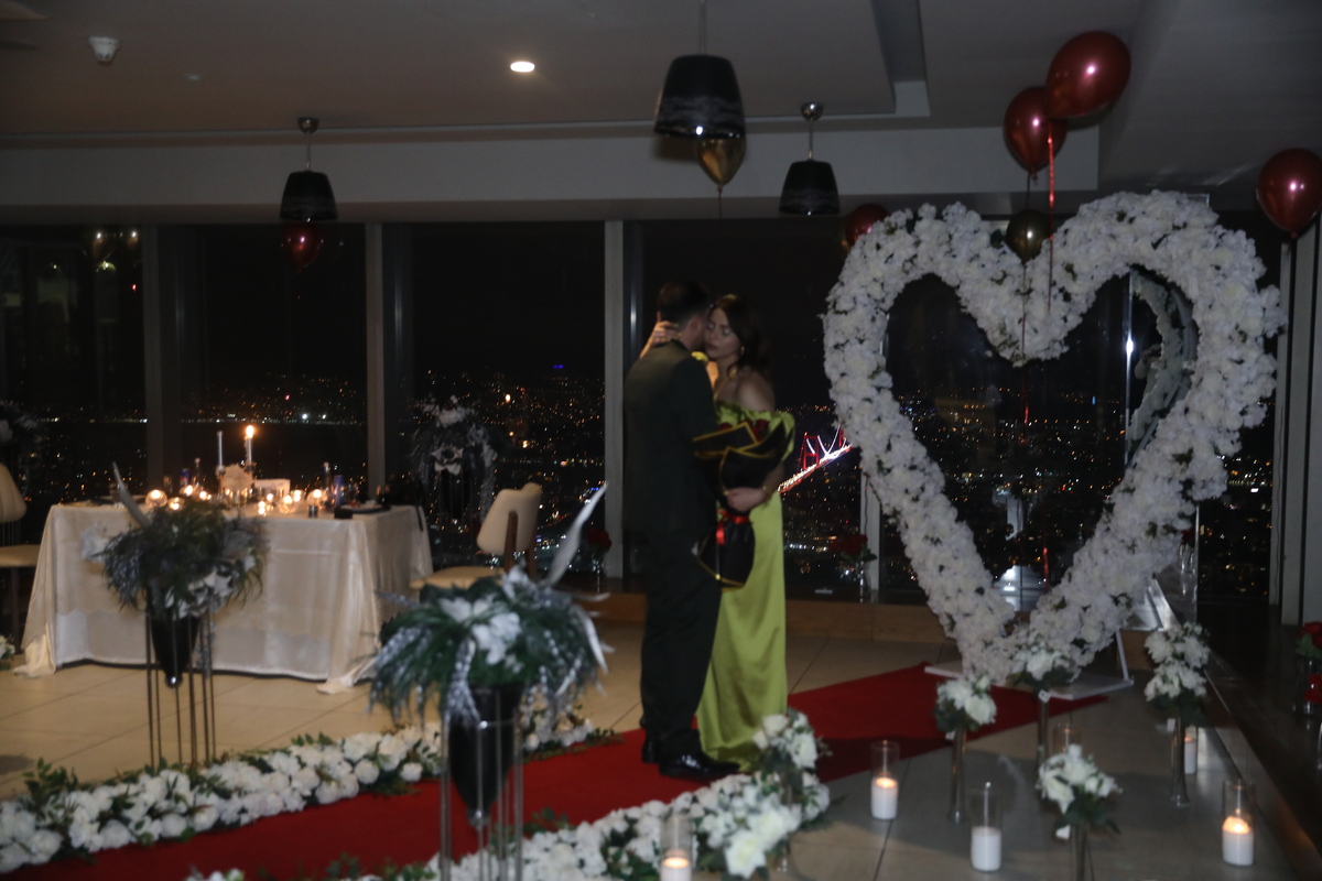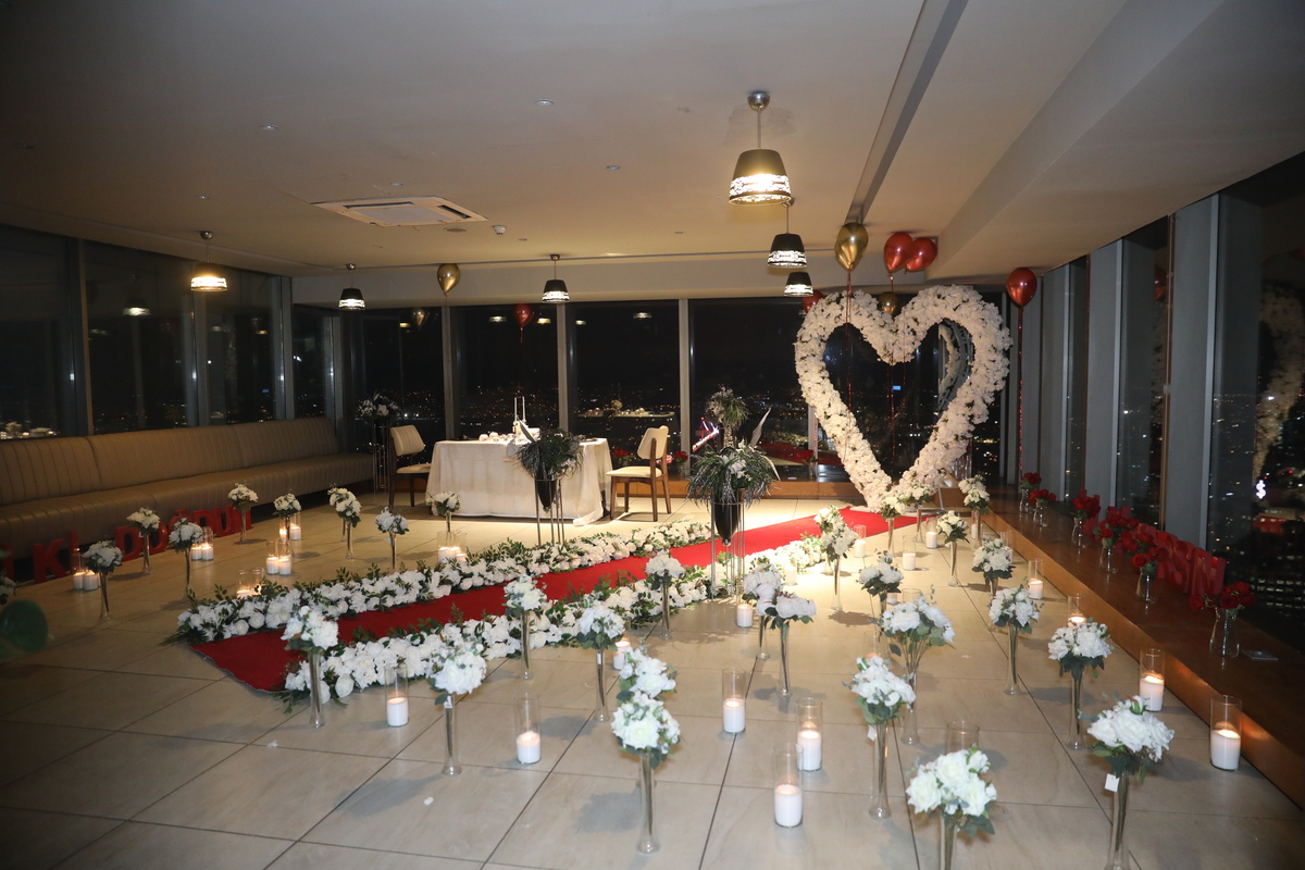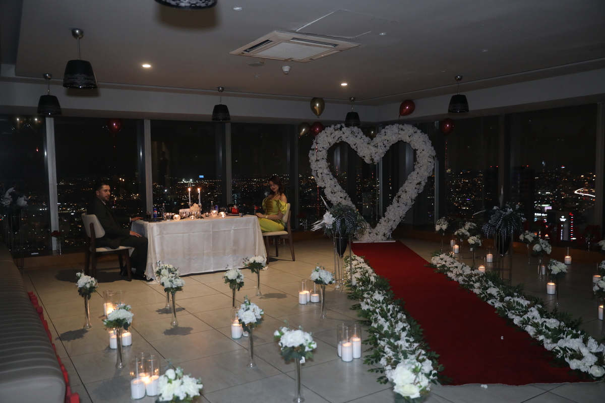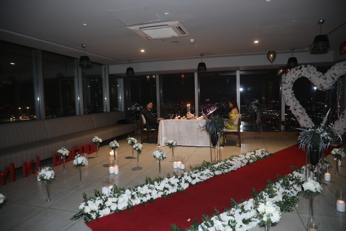 Yerden 236 metre yüksekteyken, Türkiye'nin en yüksek binasının altmış altıncı katındayken, duygusal olarak zaten ayaklarınız yerden kesilmişken, fiziksel olarak da havalarda olun ve bu eşsiz anı daha da unutulmaz kılın! “Sana dün bir tepeden baktım Aziz İstanbul!” diyen şairin bile hayal edemediği nefis panoramik İstanbul manzarası, bu romantik anınıza şahitlik etsin! Kız Kulesi ve Ayasofya'nın kuş bakışı görüntüleri alkış tutsun aşkınıza! Yedi Tepeli İstanbul'un gecesini aydınlatan binlerce ışık, sizin gözlerinizde yansımasını bulsun. Nice medeniyete ev sahipliği yapmış bu aziz şehrin silueti; bir atlas halı gibi tüm güzellikleriyle yayılsın ayaklarınızın altına. Ve uzansanız dokunacakmış hissi veren yıldızlar, göz kırpsın bu muhteşem çiftin sevdasına...